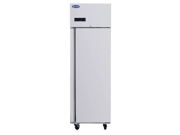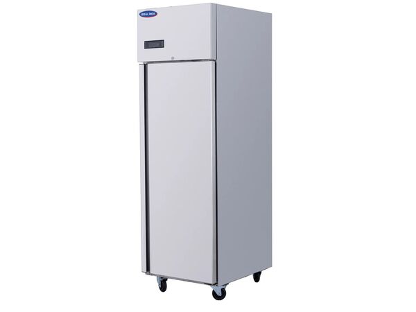 Congelator profesional inox cu o usa, conceput pentru utilizare intensa in bucatariile HoReCa, restaurante, hoteluri si unitati de catering. Echipat cu control electronic precis si afisaj digital al temperaturii, permite monitorizarea facila si constanta a conditiilor de depozitare, asigurand pastrarea optima a alimentelor la temperatura dorita. Usa este prevazuta cu sistem de auto-inchidere, care reduce pierderile de frig si contribuie la eficienta energetica. Interiorul este dotat cu 22 de ghidaje, compatibile cu tavi GN 2/1 sau 2 tavi GN 1/1, oferind flexibilitate maxima in organizarea produselor. Include 4 polite tip gratar (650x530 mm), ideale pentru depozitarea diverselor recipiente, tavi si produse ambalate. Iluminarea interioara asigura vizibilitate excelenta si acces rapid la continut.