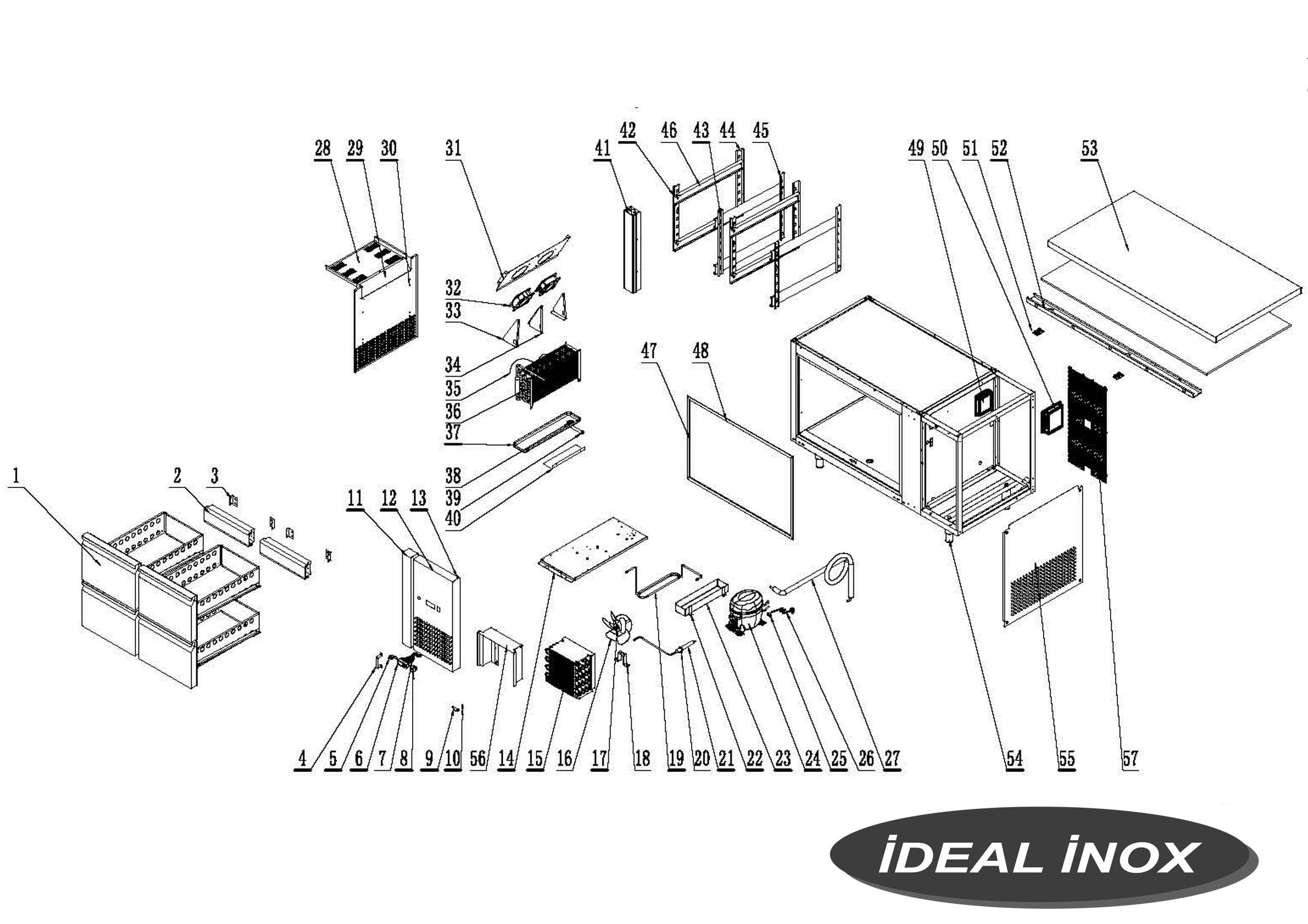 Masa rece cu 4 sertare, Ideal Inox, 280 l, 1360x700x850 (Lxlxh)