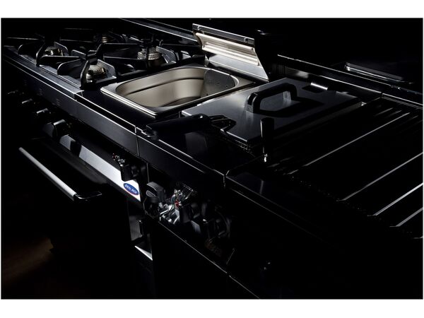 Gratar pe gaz natural cu placa neteda si striata, de banc, constructie inox, valva de siguranta si termocupla, fiecare arzator functioneaza independent, sertar de scurgerea a grasimii. Se va utiliza cu un regulator de presiune.