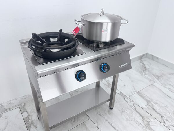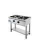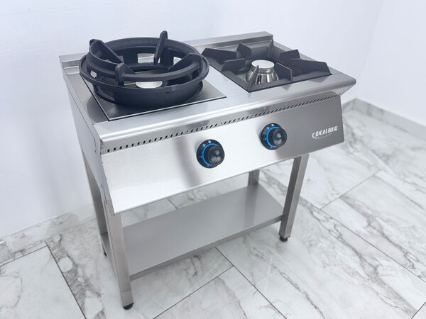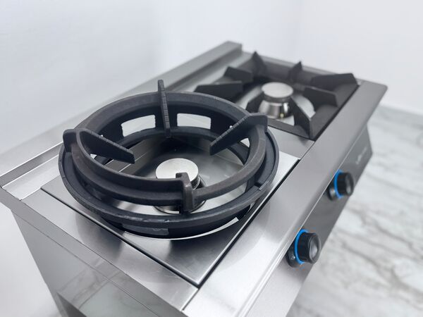 Masina de gatit cu doua  focuri pe suport neutru deschis, constructie inox. Doua arzatoare independente – permit prepararea simultana a mai multor produse. Arzatoare cu flacara mica si mare – control optim al puterii de incalzire in functie de tipul de preparat. Arzatoare cu flacara dubla – distribuire uniforma a caldurii pentru gatire precisa. Valva de siguranta si termocupla – protectie maxima impotriva scurgerilor de gaz.Grilaj din fonta.Se va utiliza cu un regulator de presiune.