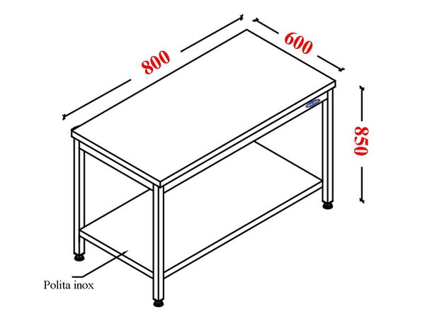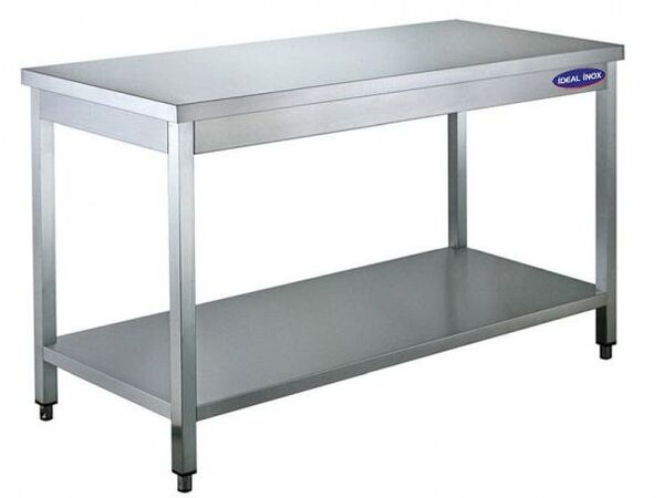 Masa de lucru inox centrala cu polita inferioara, constructie inox AISI 430, blat cu margini rotunjite, picioare din profil inox rectangular 40x40 mm - confera stabilitate, reglabile pe inaltime, finisaj scotch brite. Planul de lucru al mesei este ranforsat cu blat din PAL pentru a conferi o rezistenta sporita, incluziv pentru depozitarea echipamentelor HoReCa.